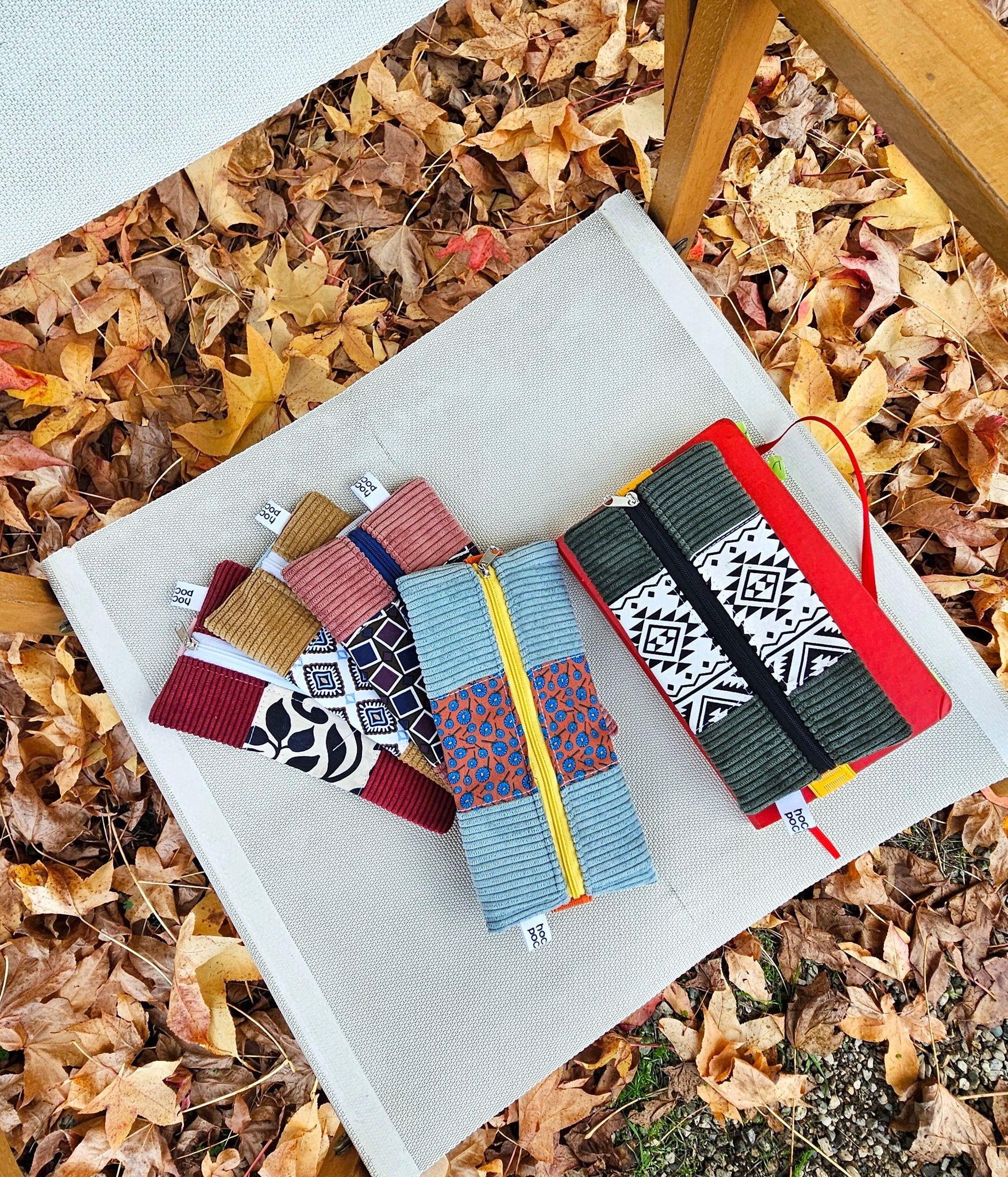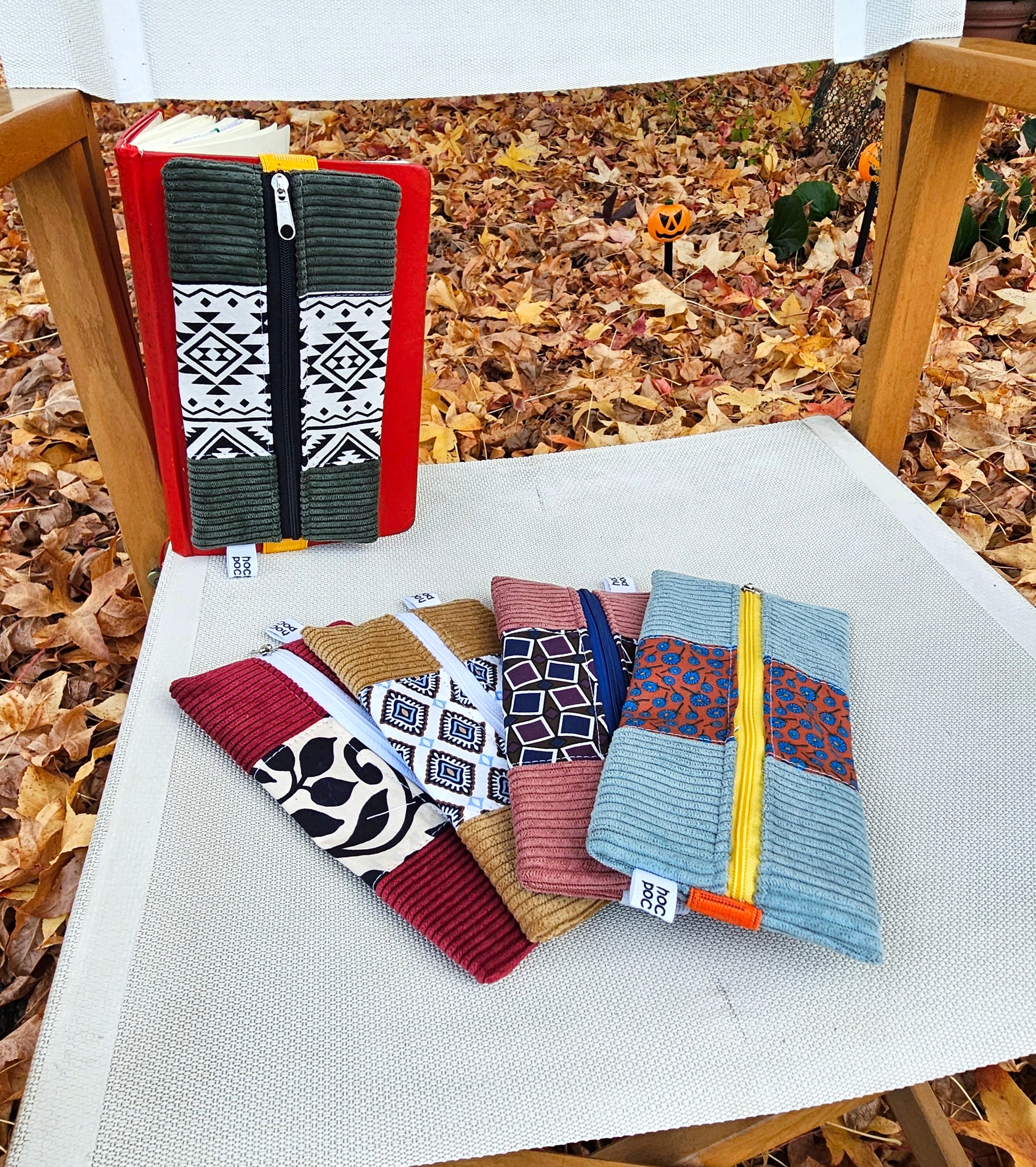 Astuccio da agenda con elastico, in velluto e tessuto fantasia, 5 fantasie