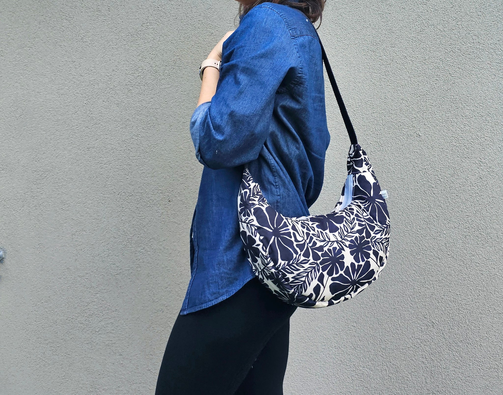 Borsa morbida a mezzaluna in cotone con tracolla regolabile, fantasia Flora Provenzale