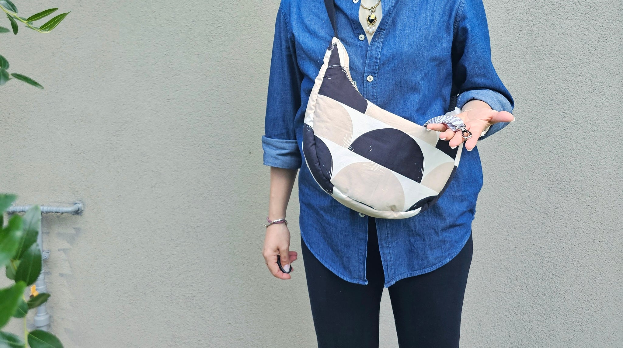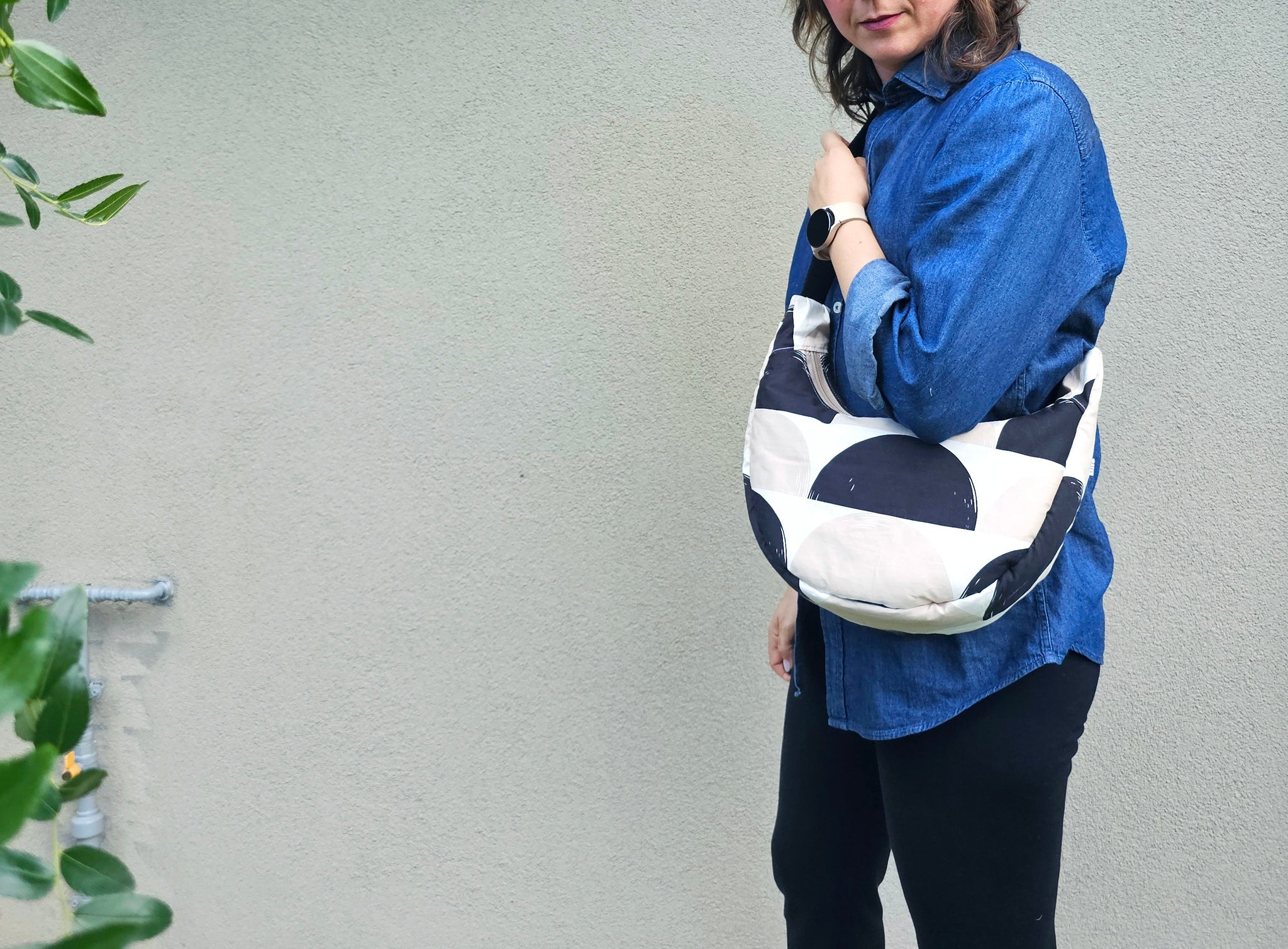 Borsa morbida a mezzaluna in cotone con tracolla regolabile, fantasia Dune