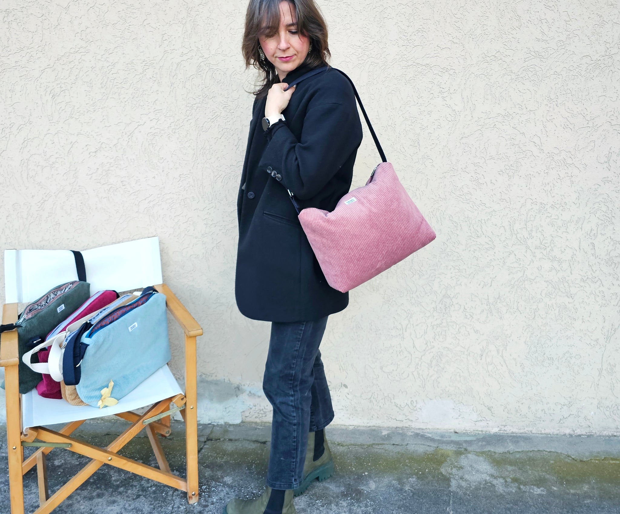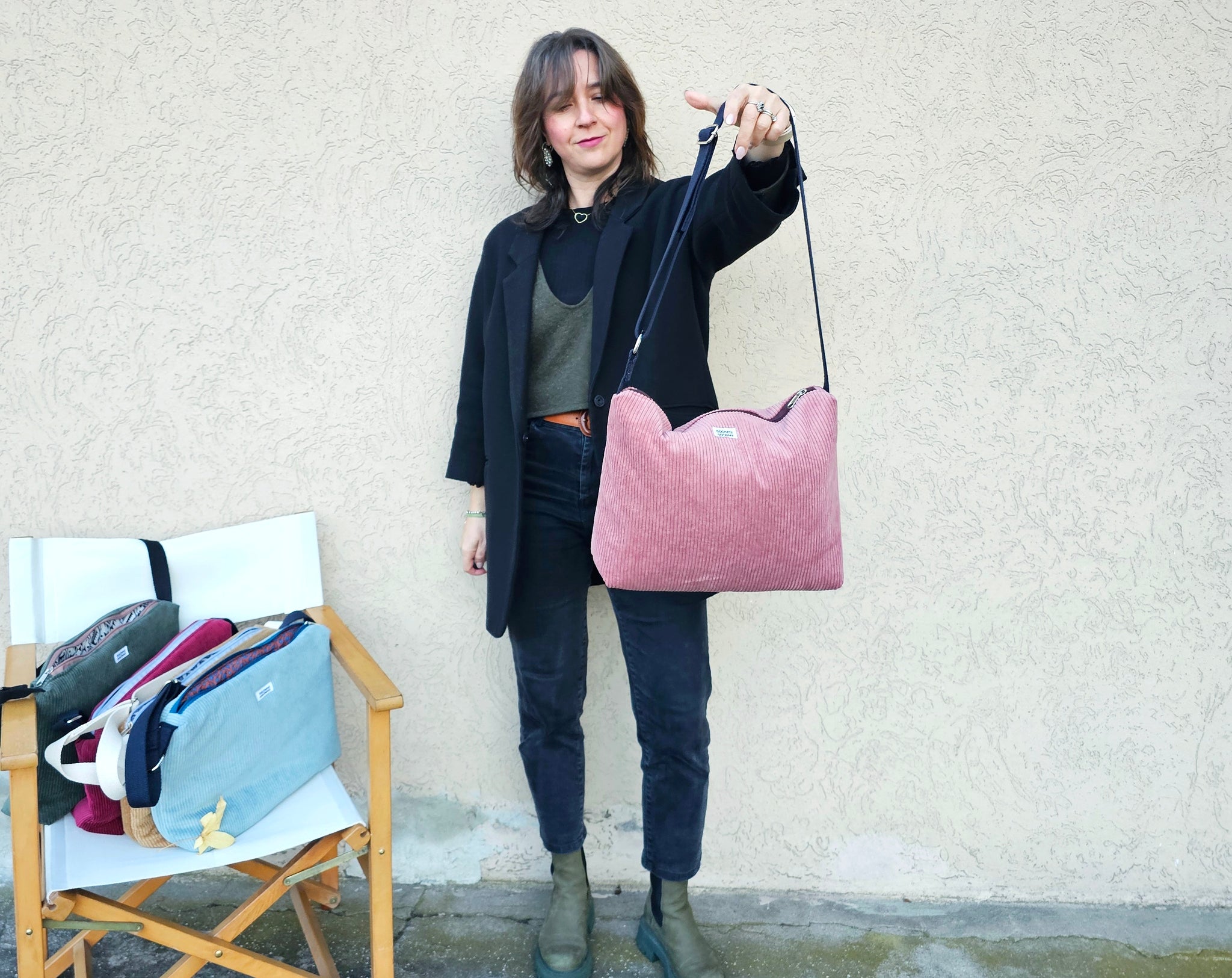 Questa borsa in velluto a costine è perfetta per chi vuole portare con sé colori e allegria. L'interno è in tessuto popeline leggero, su un lato troverai una tasca aperta, dall'altra 3 tasche super comode. Una borsa grande e capiente che ti accompagnerà ovunque con stile.