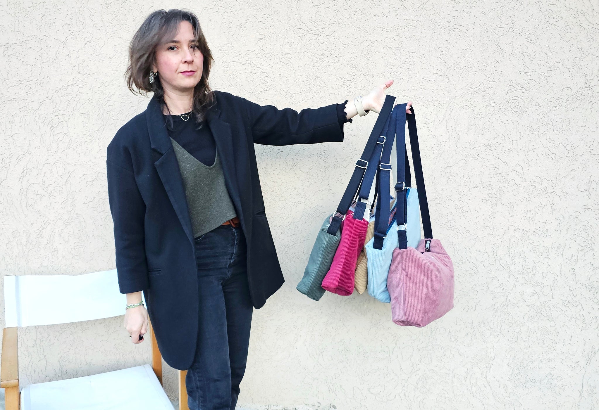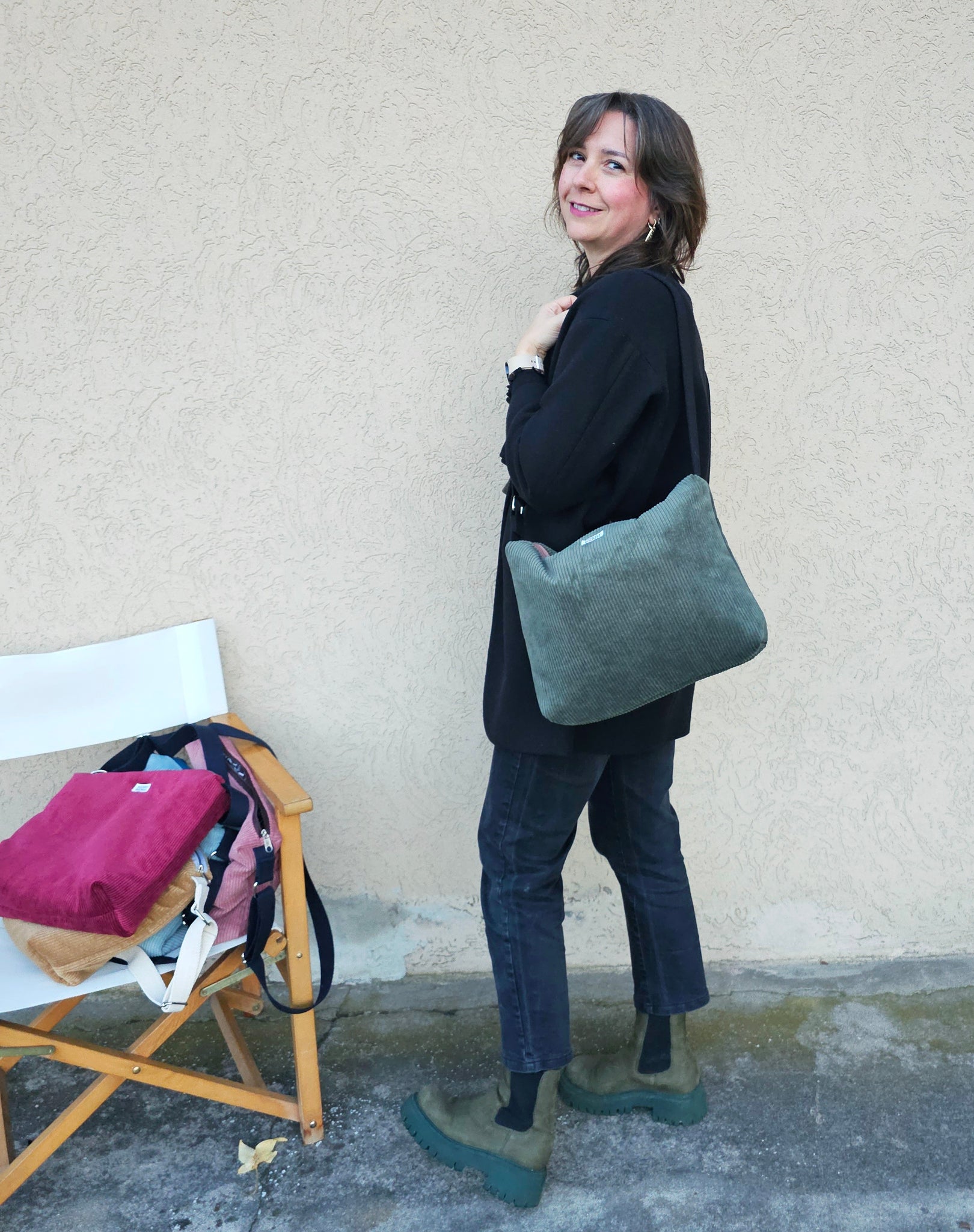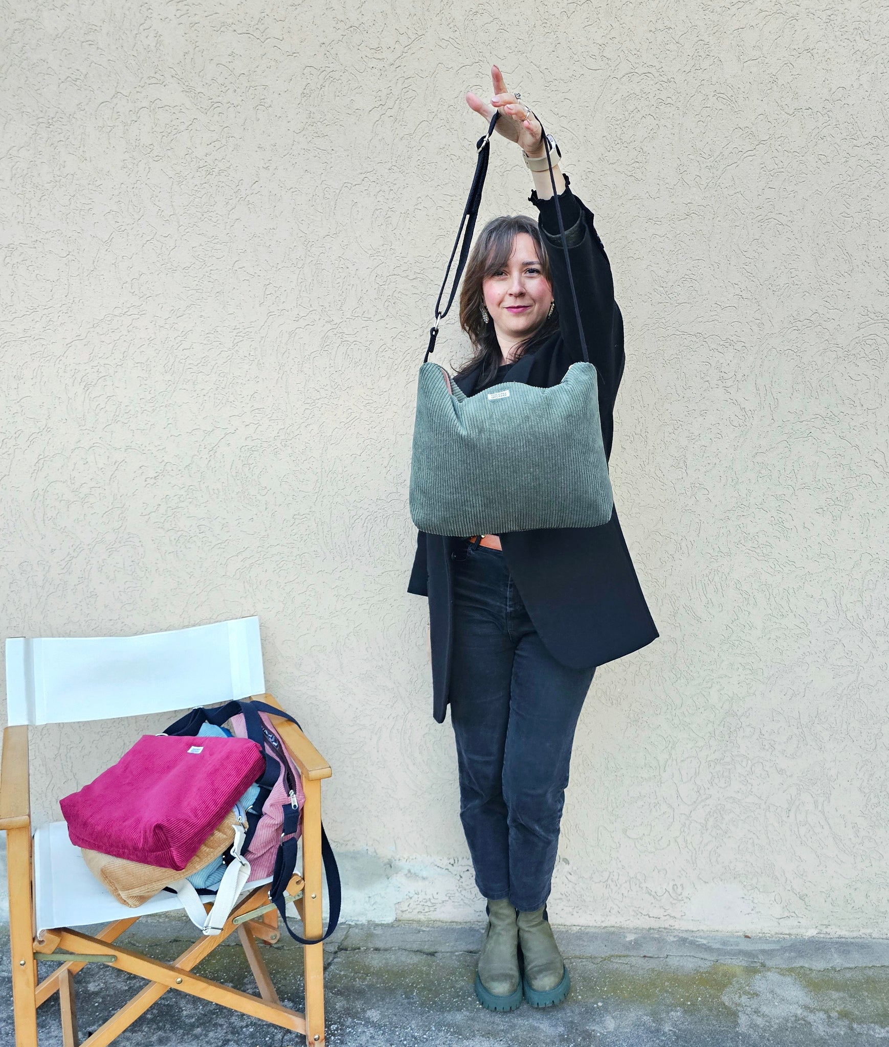 Questa borsa in velluto a costine è perfetta per chi vuole portare con sé colori e allegria. L'interno è in tessuto popeline leggero, su un lato troverai una tasca aperta, dall'altra 3 tasche super comode. Una borsa grande e capiente che ti accompagnerà ovunque con stile.