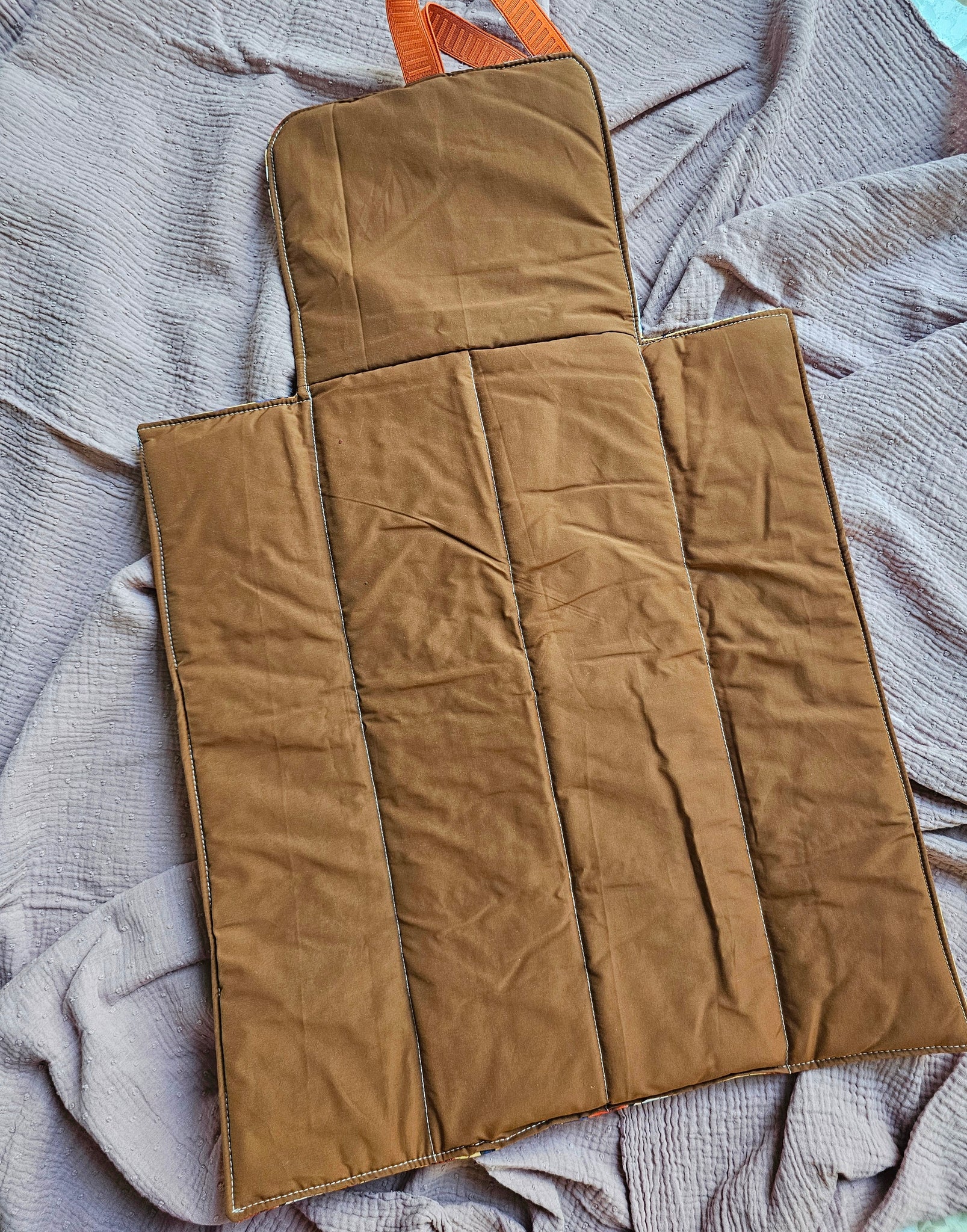 Il FASCIATOIO all'interno è realizzato in tessuto IMPERMEABILE e se al tuo bimbo scapperà la pipì nel cambio pannolino (cosa frequentissima) ti basterà un colpo di spugna per pulirlo.