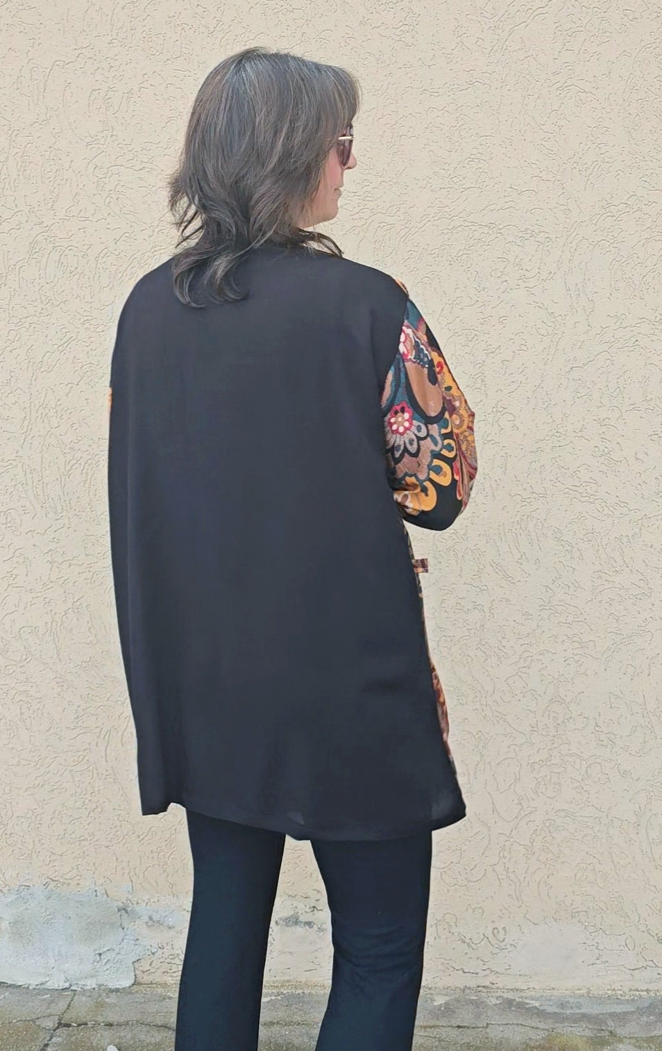 Il modello è in taglia unica con le spalle scese per dare maggiore vestibilità, la manica a tre quarti, ha una lunghezza che scende sotto al sedere.