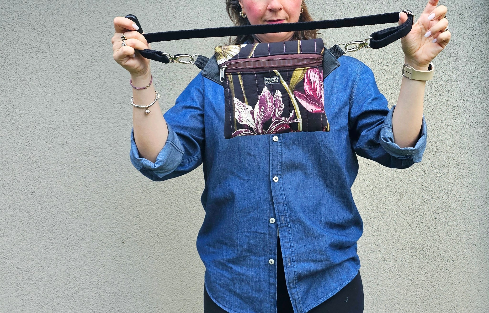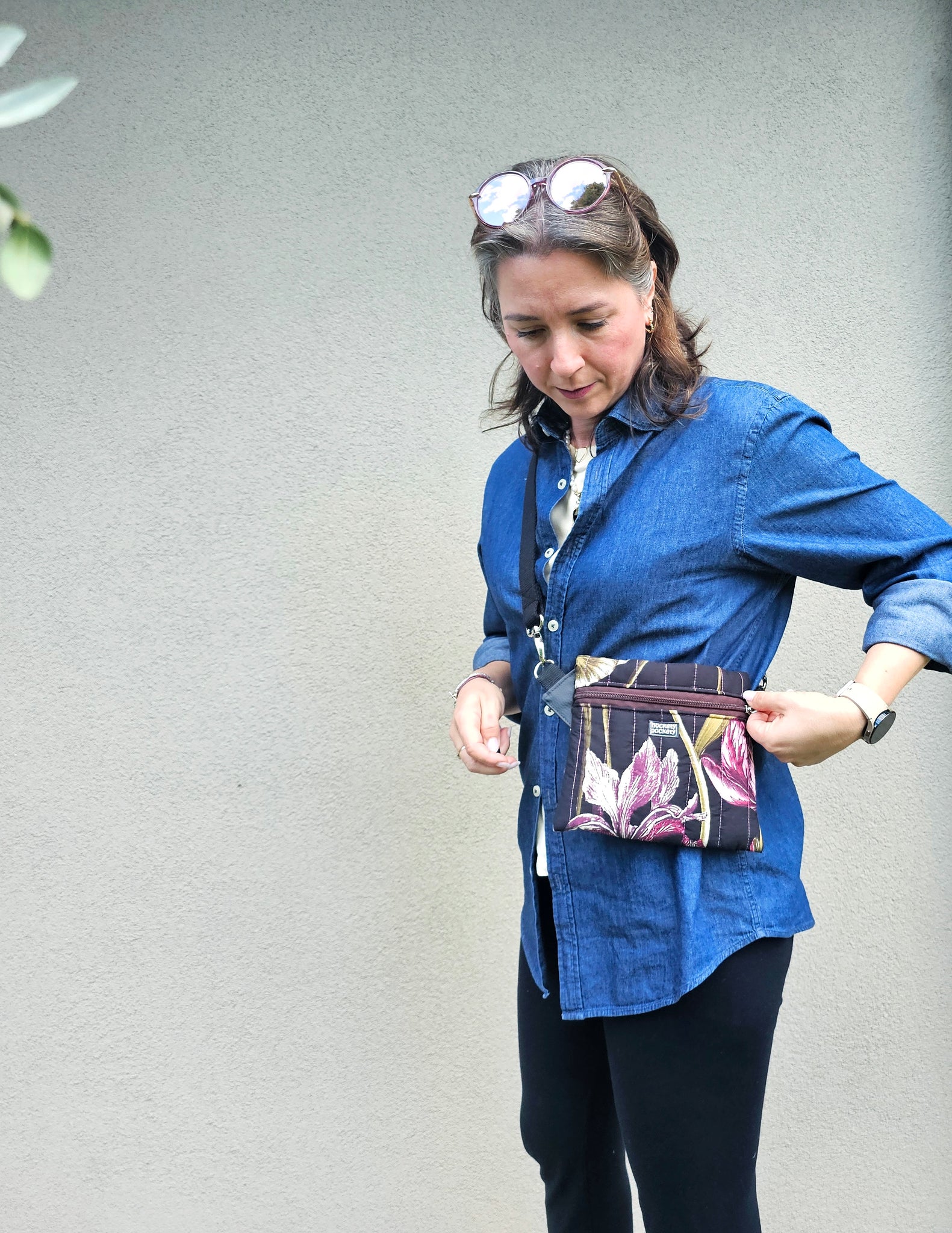 Marsupio piatto con tracolla staccabile, fantasia Giappone Fiorito