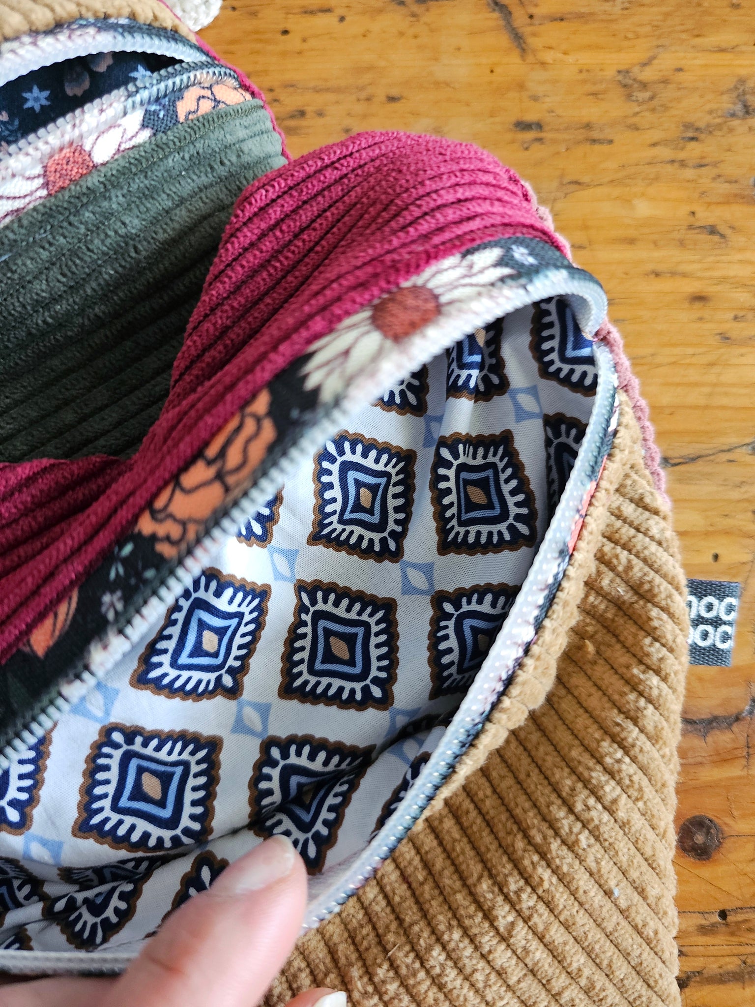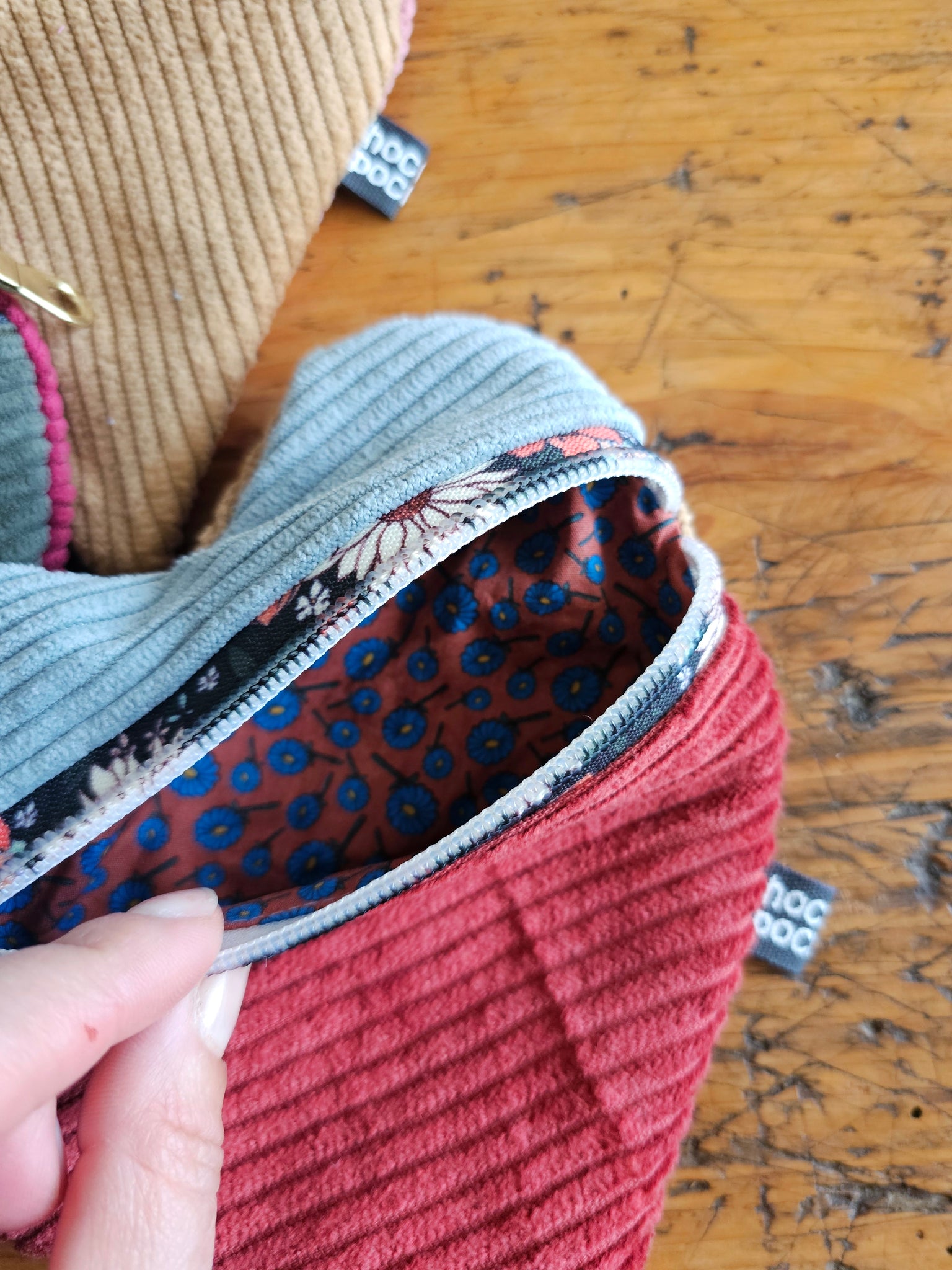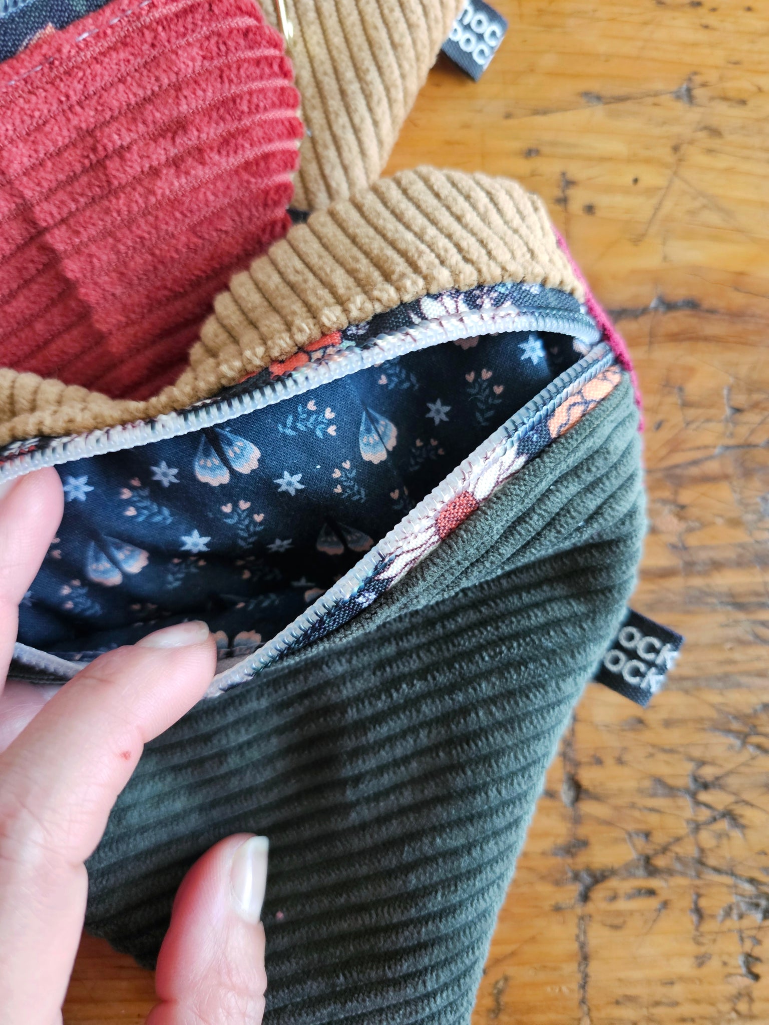 Ogni pochette artigianale è unica e realizzata con velluto a coste abbinato a una cerniera floreale con la zip color oro. Il risultato è un piccolo accessorio sfizioso, perfetto da tenere in borsa per custodire gli oggetti di tutti i giorni.