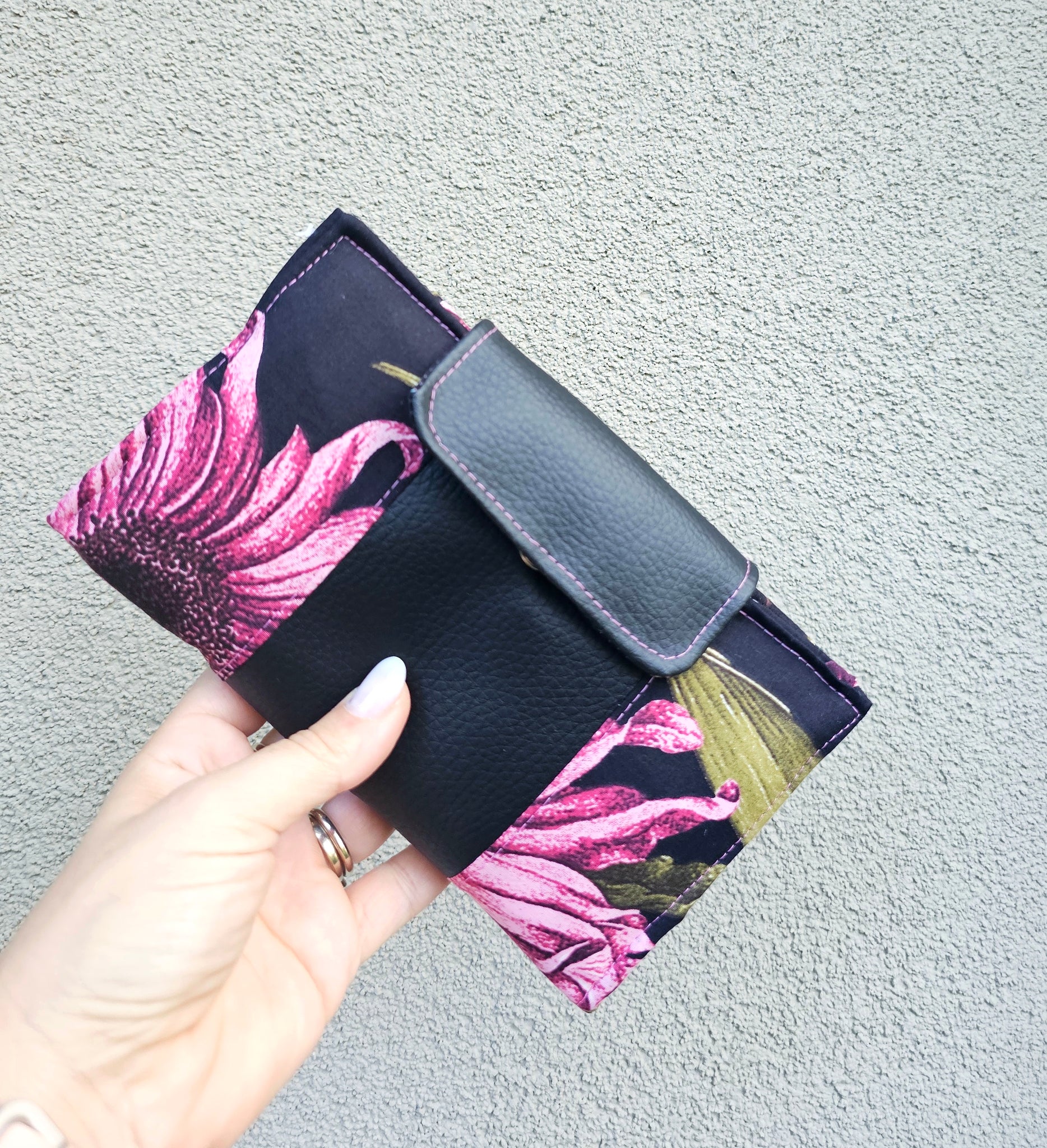 Portafoglio da donna in tessuto tecnico e similpelle rame fantasia Giappone Fiorito